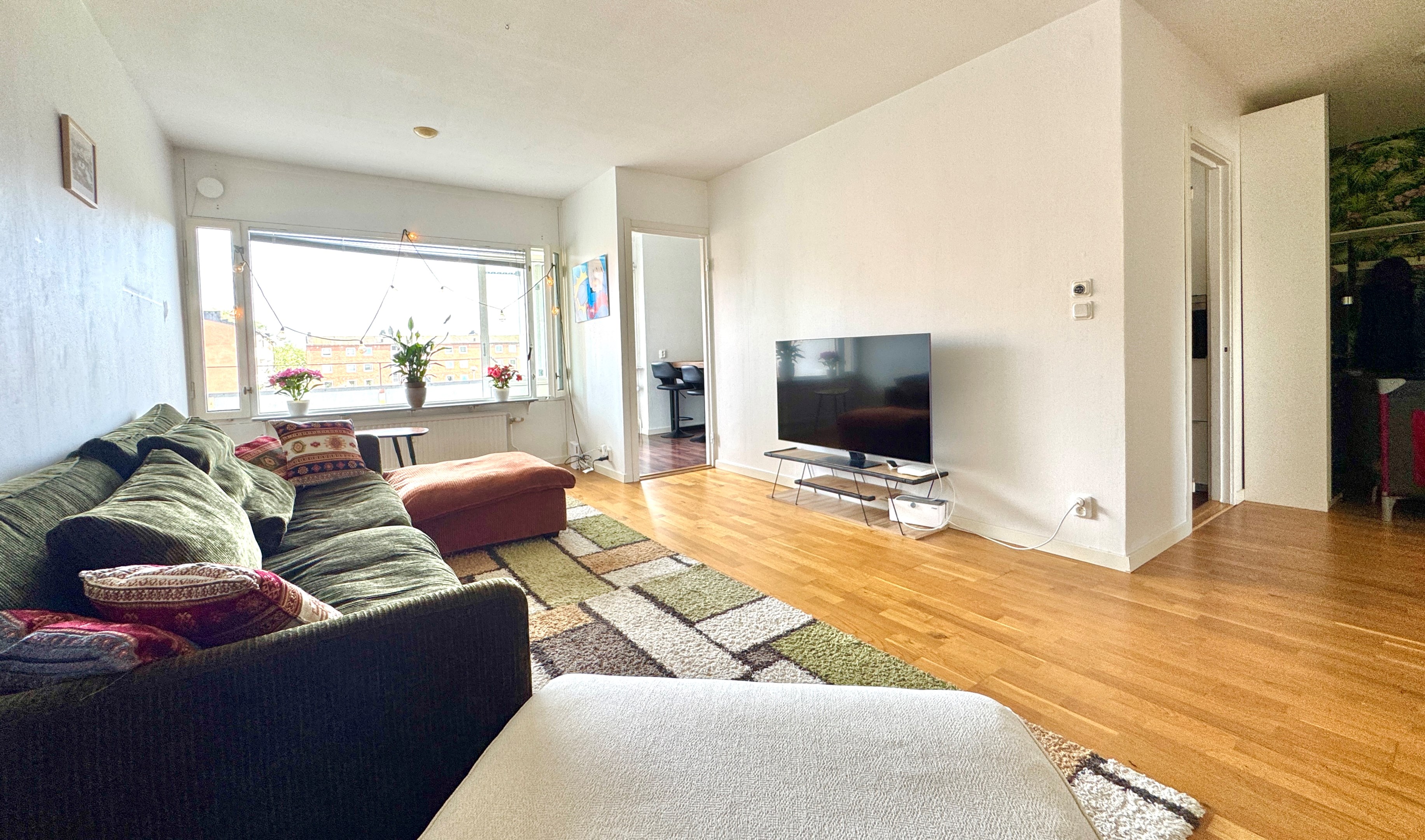 Lägenheten består av ett sovrum om ca 12 kvm och det lite mindre sovrummet på ca 10 kvm. Vardagsrummet är ljust och luftigt och har ett vackert parkettgolv. Köket är modernt samt har matplats för 4. Badrummet är fördelat på en toalett-del samt en badrums-del med tvättmaskin. Lägenheten är genomgående och släpper därför in maximalt med ljus.